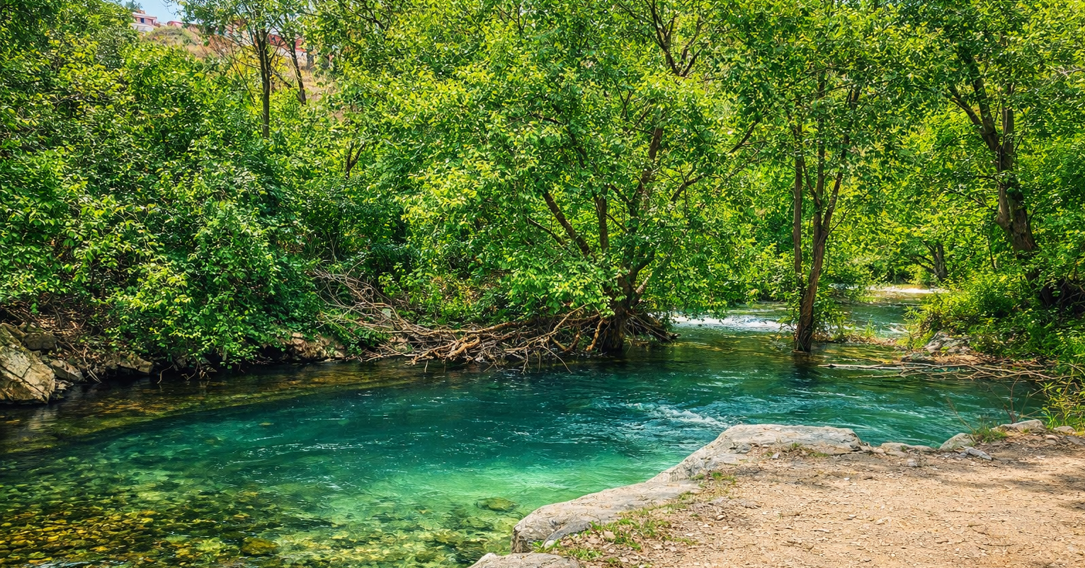 Experience the tranquility of a picturesque route that begins 10 min walk from house and extends all the way from the gentle spring waters to the expansive sea. This inviting pathway offers an ideal setting for leisurely walks, allowing visitors to immerse themselves in the natural beauty of the river landscape. Click for Location